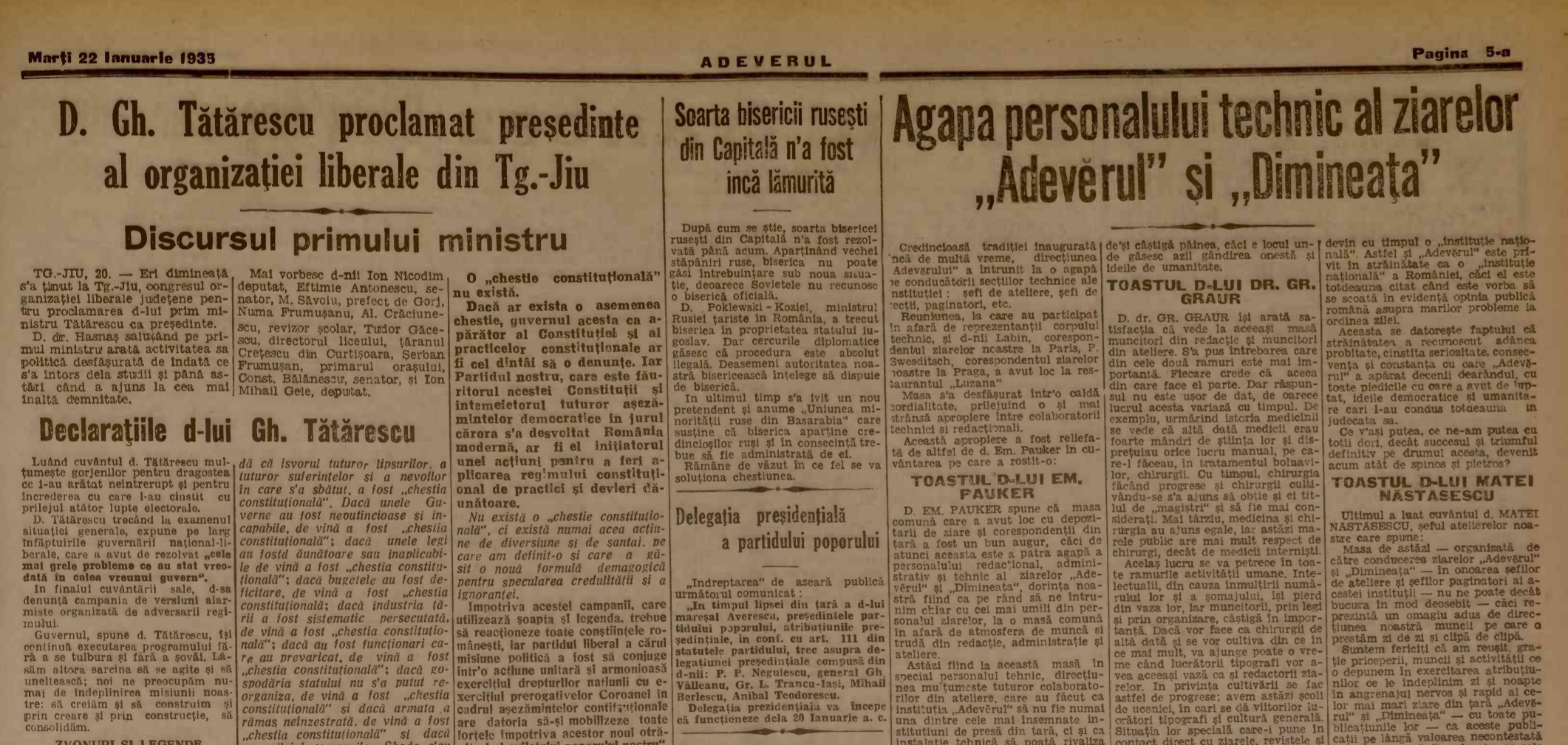 Sursa: „Adevărul”, 49, nr. 15.652, din 22 ianuarie 1935, p. 5.