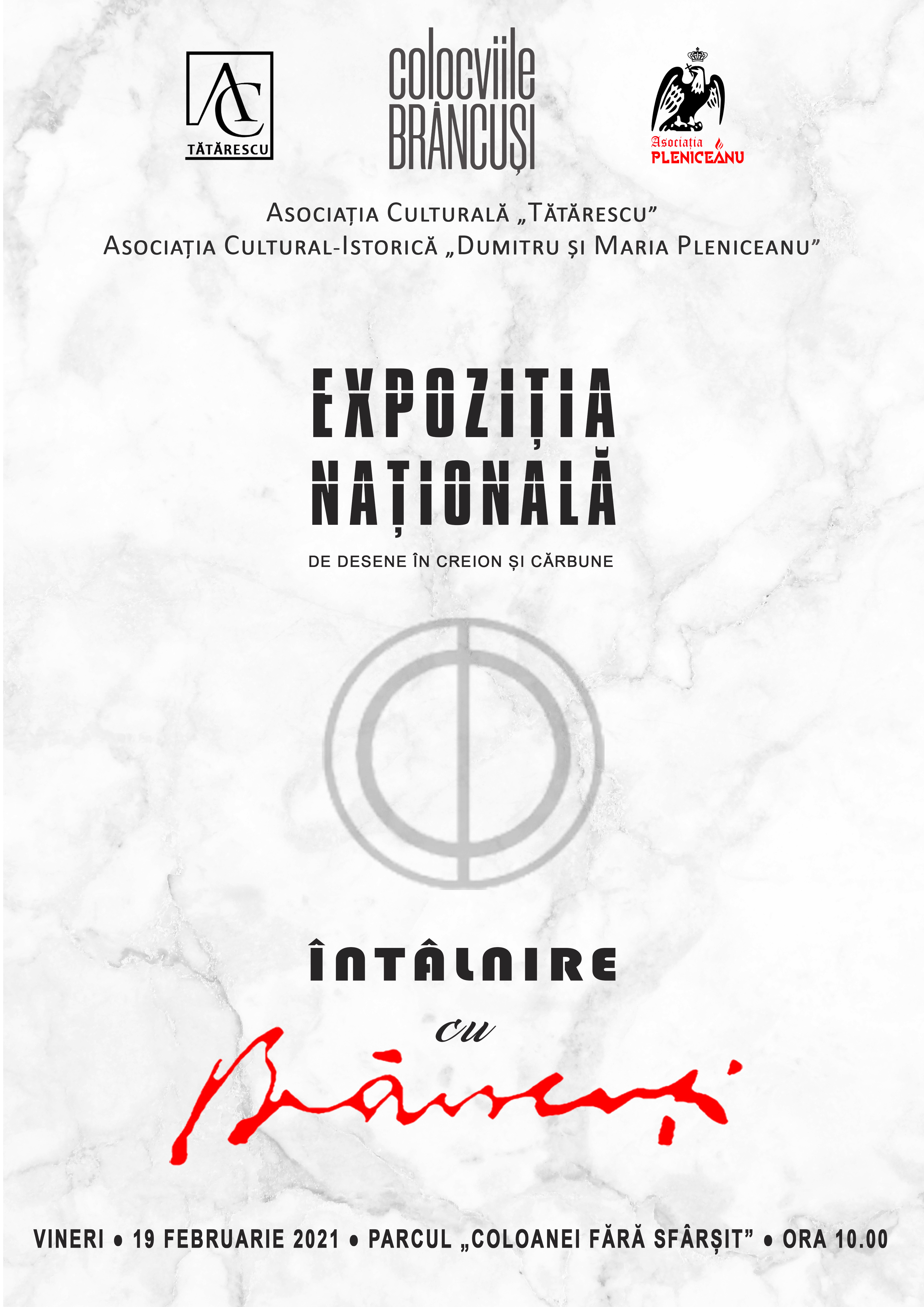 Asociația culturală „Tătărescu” și Asociația cultural-istorică „Dumitru și Maria Pleniceanu” vă invită în data de 19 februarie 2021, în cadrul Colocviilor Brâncuși, 145 de ani de la nașterea sculptorului Constantin Brâncuși, la Expoziția Națională de desene în creion și cărbune „Întâlnire cu Brâncuși”.
