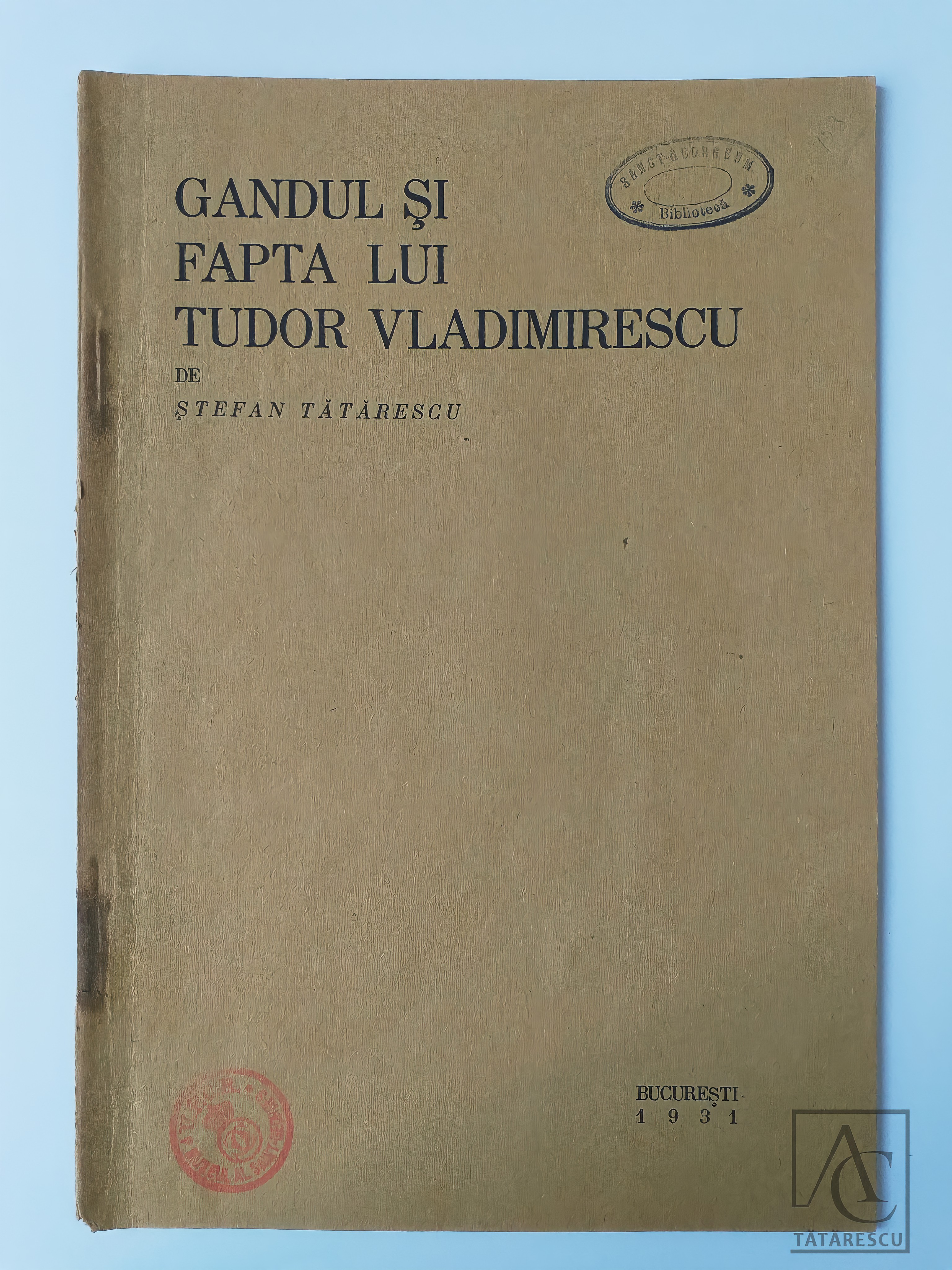 * Vezi Ștefan Tătărescu, Gândul și fapta lui Tudor Vladimirescu, București, 1931.