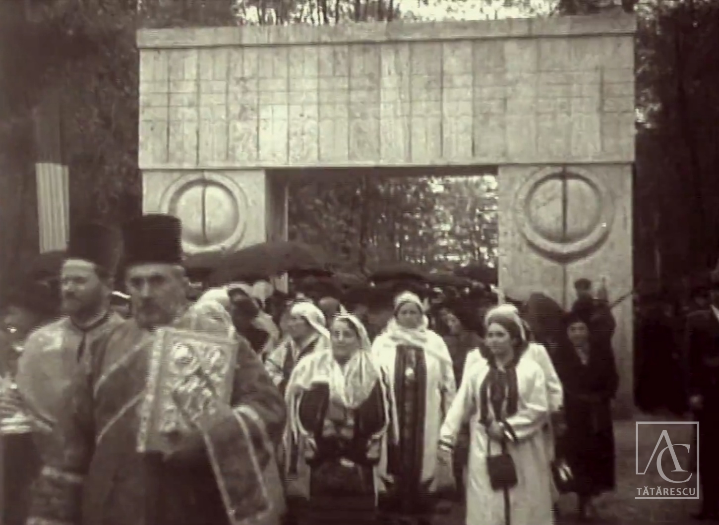 Marinela Strîmbulescu, președintele Asociației culturale Tătărescu, a publicat pe pagina asociației o serie de fotografii inedite de la inaugurarea ansamblului monumental, din toamna anului 1938. „Este vorba despre un set de cinci fotografii în care apar Arethia Tătărescu, primarul orașului Târgu Jiu de la acea dată, Alexandru Ciocănescu, fost-prim-președinte al Tribunalului Gorj, soborul de preoți care a oficiat slujba de sfințire a operelor închinate eroilor Primului Război Mondial, oficialități și public. Fotografiile sunt inedite, trei dintre acestea surprizând momentul în care primarul orașului a tăiat cele două panglici de la Portalul eroilor. Alături de Arethia Tătărescu se află doamnele din Liga Națională a Femeilor Gorjene”.