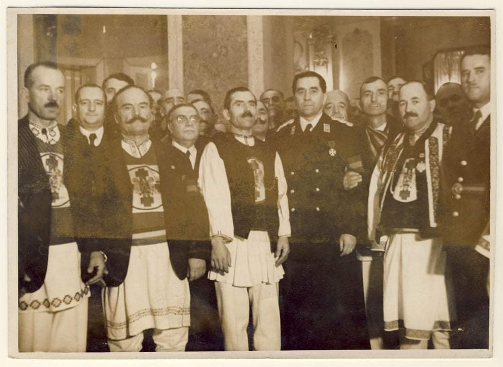Gh. Tătărescu alături de deputaţii ţărani din Frontul Renașterii Naționale îmbrăcaţi în costume naţionale. Pe revers este plasată ştampila rotundă, de autor a lui Iosif Berman.