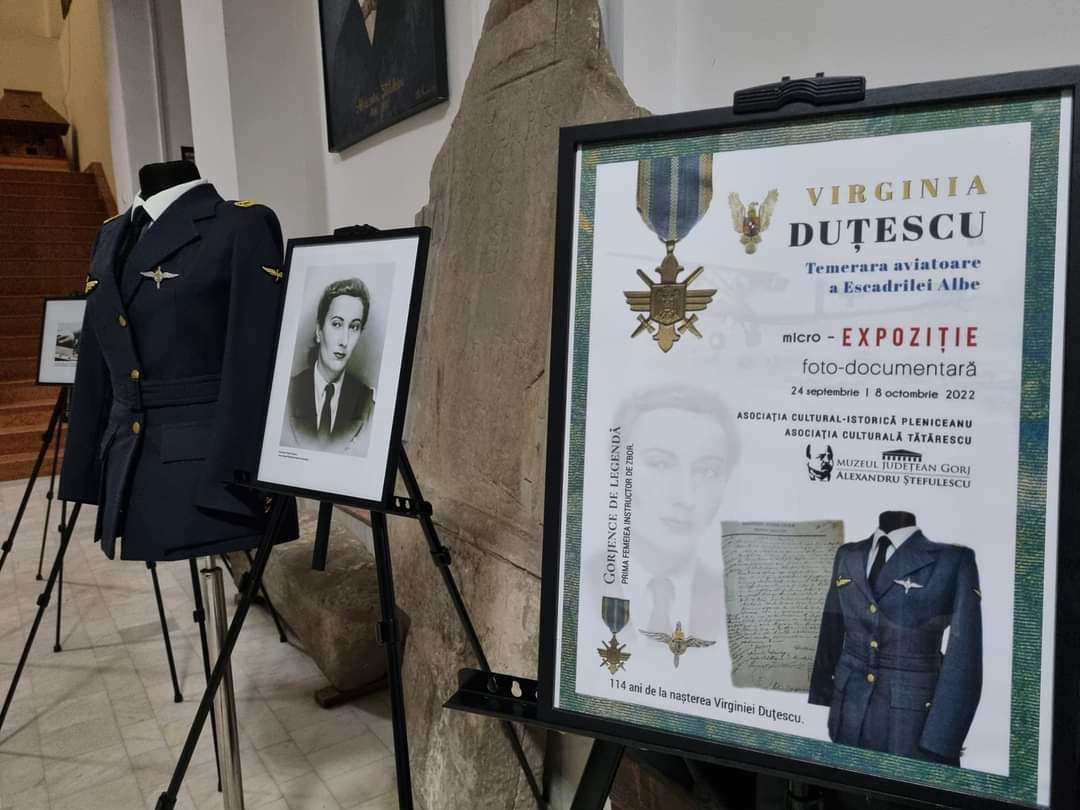 Muzeul Județean Gorj „Alexandru Ștefulescu” găzduiește în perioada 24 septembrie – 8 octombrie 2022, Micro-Expoziția „Virginia Duțescu | Temerara aviatoare a Escadrilei Albe”, organizată de Asociația cultural-istorică Pleniceanu și Asociația culturală Tătărescu.