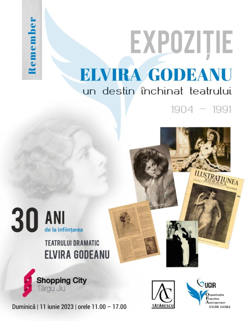Organizația Femeilor Antreprenor – OFA UGIR Gorj împreună cu Asociația culturală Tătărescu vă invită duminică, 11 iunie 2023, la Shopping City Târgu Jiu, pentru a vizita Expoziția „Elvira Godeanu – un destin închinat teatrului”, cu ocazia împlinirii a 30 de ani de la înființarea teatrului care poartă numele celebrei actrițe născută la Târgu Jiu.