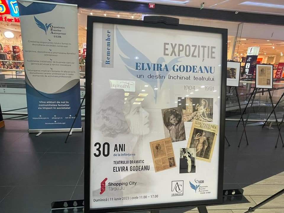 Organizația Femeilor Antreprenor – OFA UGIR Gorj împreună cu Asociația culturală Tătărescu au organizat duminică, 11 iunie 2023, la Shopping City Târgu Jiu, Expoziția „Elvira Godeanu – un destin închinat teatrului”, cu ocazia împlinirii a 30 de ani de la înființarea teatrului care poartă numele celebrei actrițe născută la Târgu Jiu. Prezentul tumultos al existenței Teatrului Dramatic „Elvira Godeanu” se aseamănă într-o oarecare măsură cu trecutul personajului expoziției oferită de Organizația Femeilor Antreprenor – OFA UGIR Gorj și Asociația culturală Tătărescu.